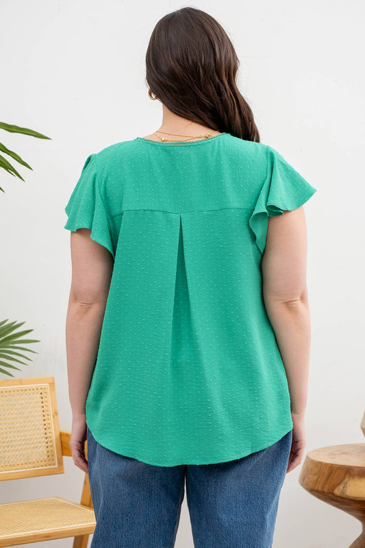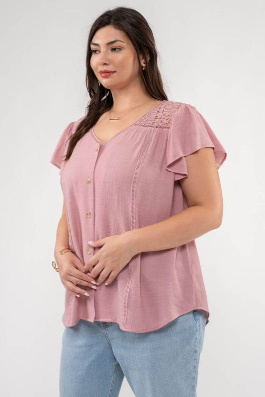 Curvy LACE HALF SLEEVE ROUND NECK & ROUND HEM TOP