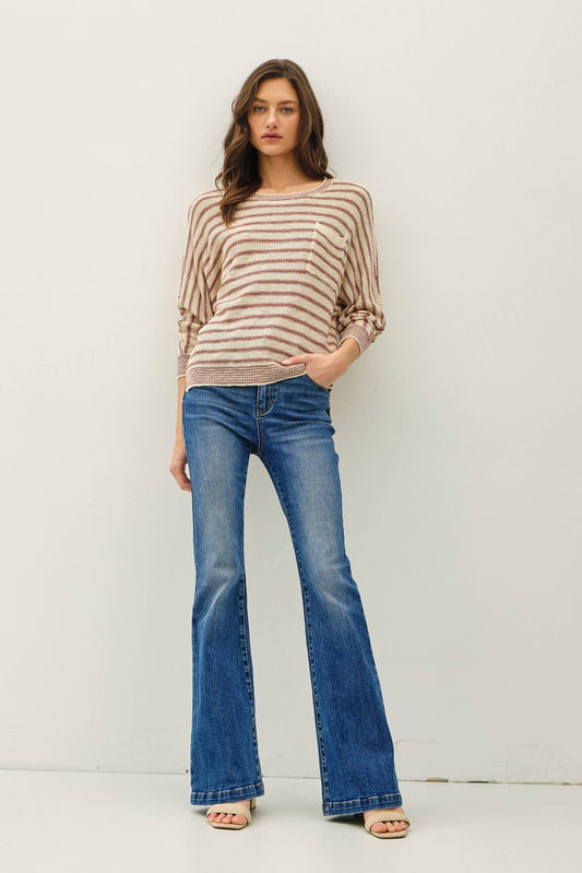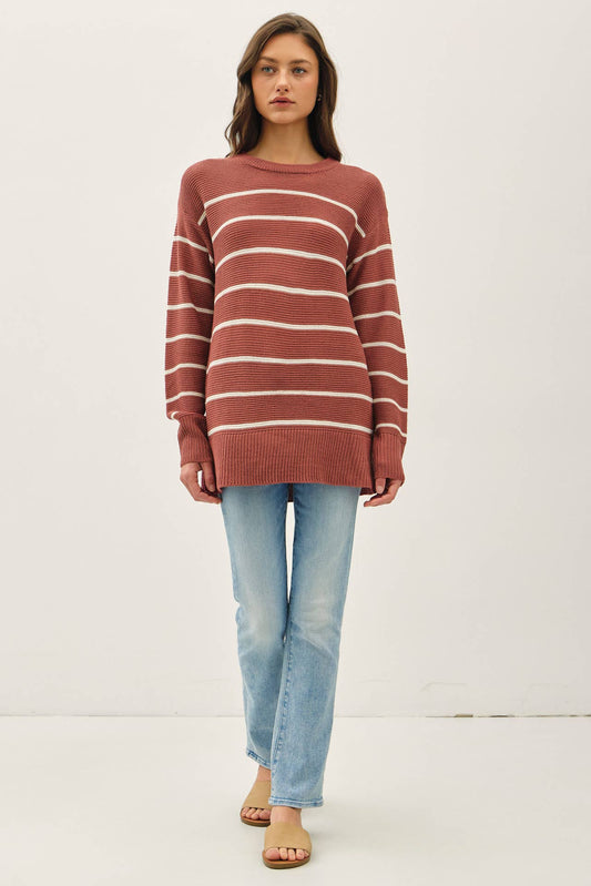 Brick STRIPED SWEATER TUNIC TOP WITH SLIT AT HEMLINE
