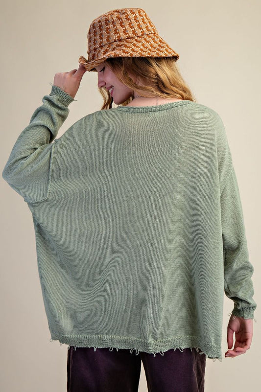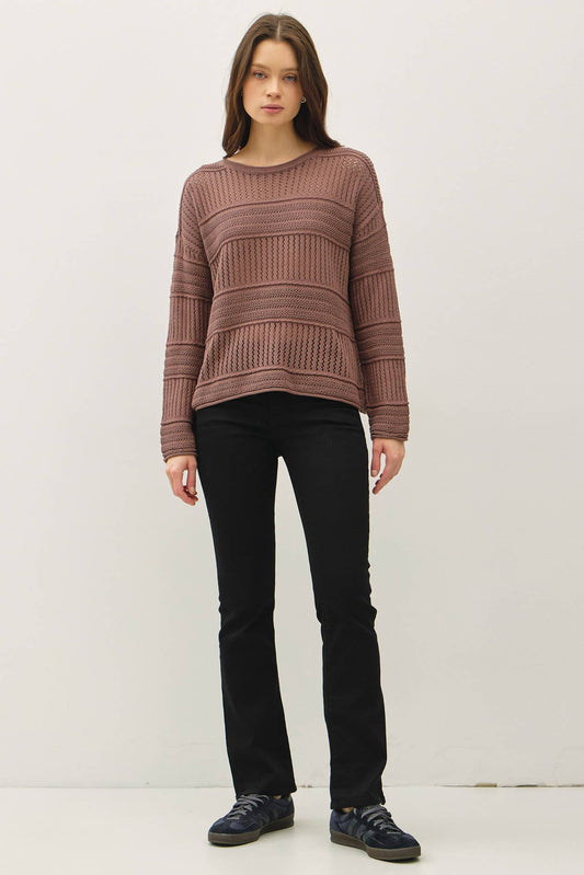 WAFFLE KNIT DOLMAN SLEEVE SWEATER: MARSALA