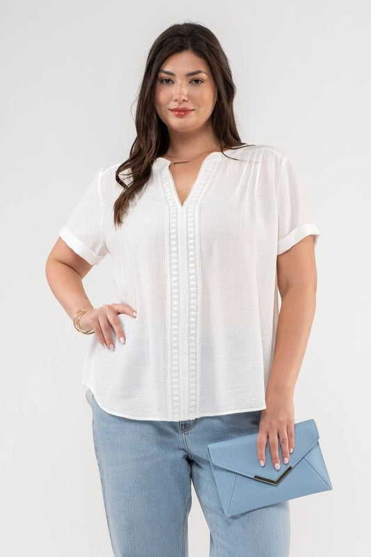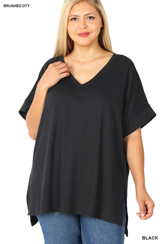 LUXE RAYON SHORT CUFF SLEEVE V-NECK TOP