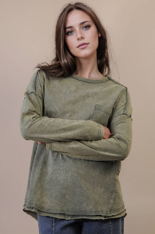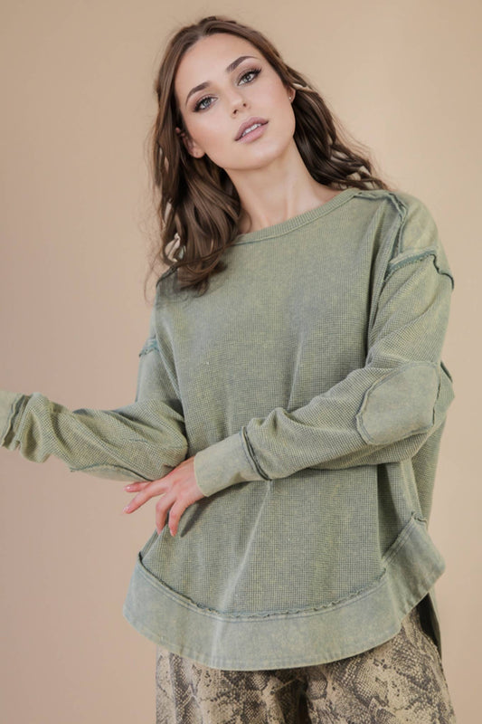 PLUS SIZE Sage Mineral Washed Contrast Knit Top