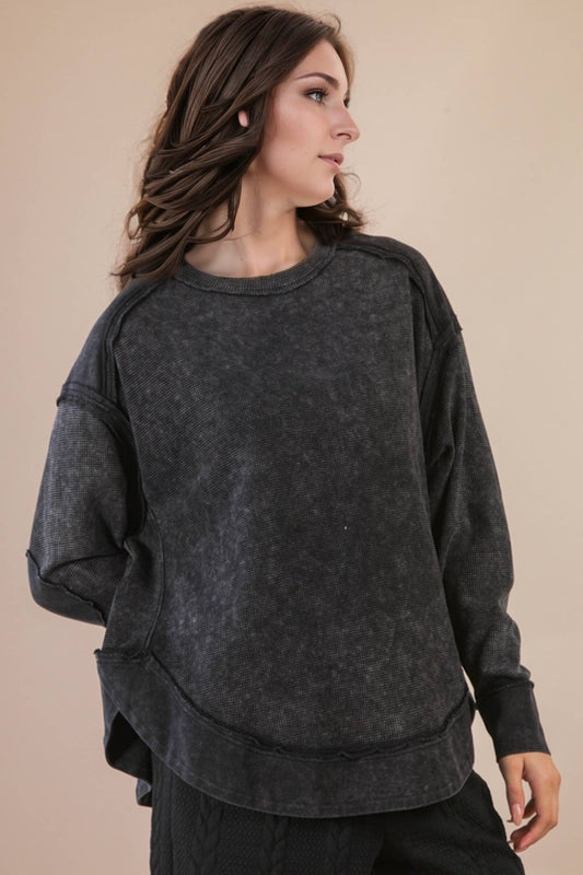 PLUS SIZE Black Mineral Washed Contrast Knit Top