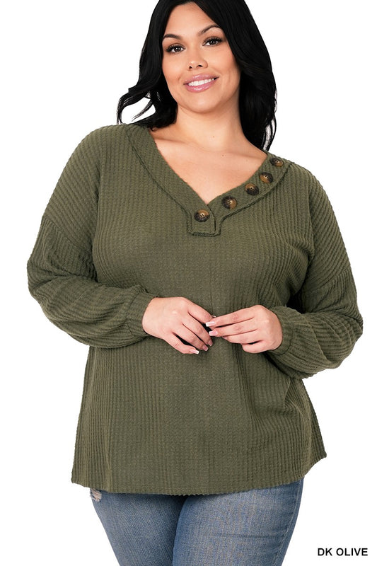 V-Neck Brushed Thermal Waffle Long Sleeve Shirt