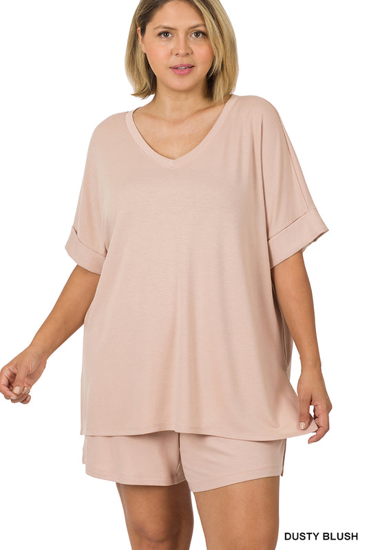 Curvy LUXE RAYON V-NECK SIDE SLIT TOP