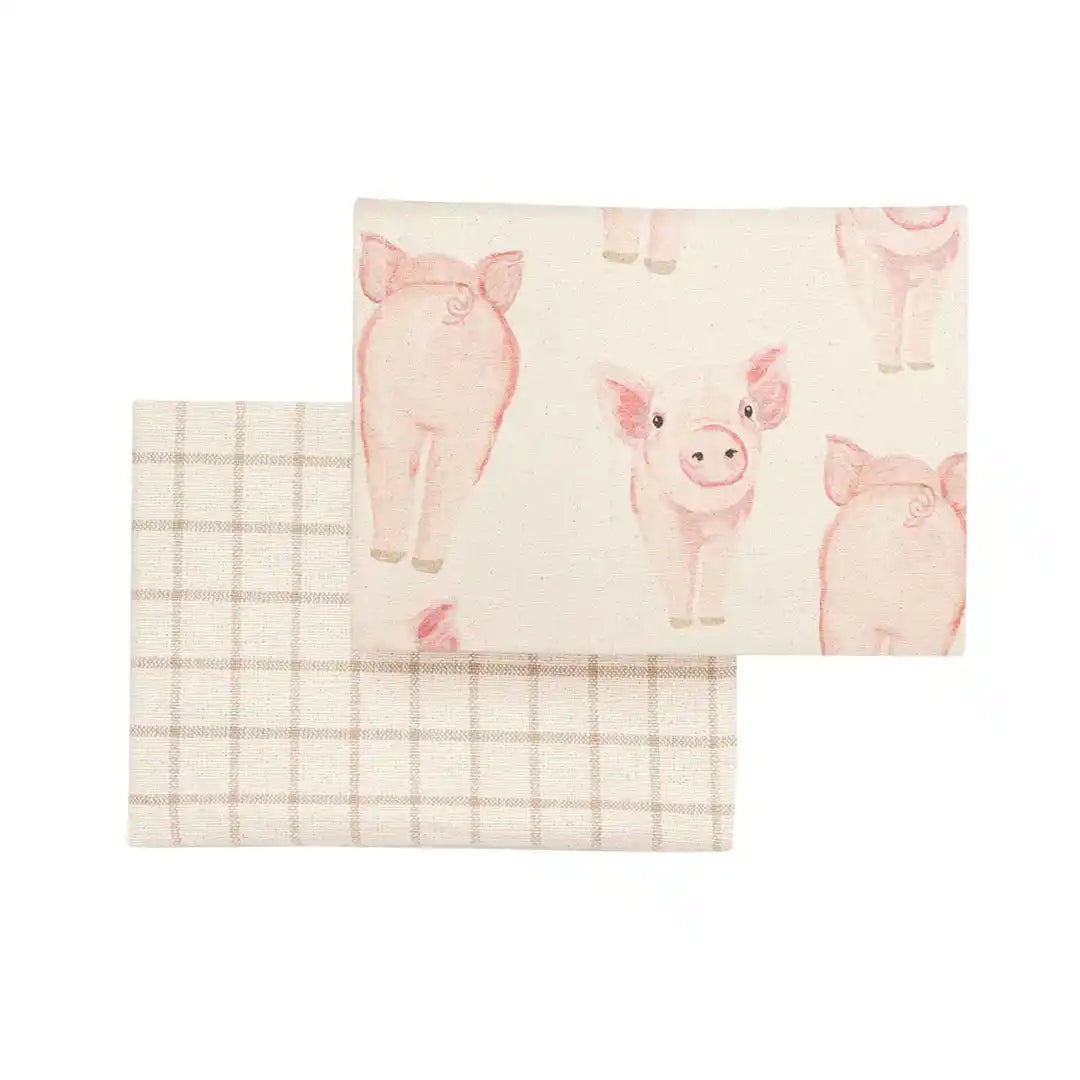 Whether you were farm raised or city raised, our Pig Hand Towel Set adds a nice touch to your farmstead kitchen. The set comes with two cotton hand towels. The hand towel features a pink pig image. The set also comes with a coordinating gingham plaid patterned hand towel.